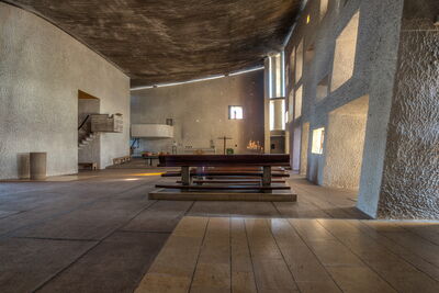 Erbaut von 1950 bis 1955 nach Plänen vom französisch-schweizerischen Architekten Le Corbusier.