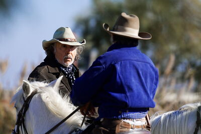 Zu Gast auf der Manade Arnaud; Camarguepferde und -stiere; Stierkampfarena Saintes-Maries-de-la-Mer; Razeteure im Einsatz in der Arena; Stierhüter 'Gardiens' zu Pferd; grosses Naturschutzgebiet mit grössten Feuchtreservaten in Europa (inkl. Mücken); Aigues mortes; Montpellier; Arles; Les Baux-de-Provence; Carrières-de-Lumières; Le Grau-du-Rois